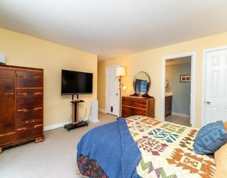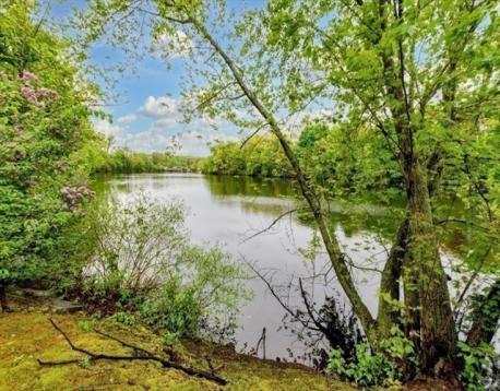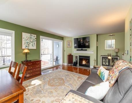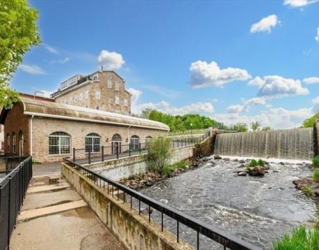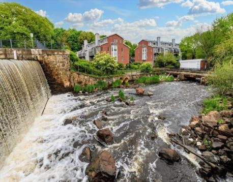 Sought after end unit on 2 levels with 2 outdoor options overlooking the majestic Motherbrook Canal. Bright,open living/dining area features a woodburning FP and sliders to a balcony where you may spot herons and swans! Beautifully updated eat-in kitchen-white shaker cabinets/quartz counters.Lower level main BR has ensuite bathroom with double sinks. Sliders to a private patio area, in unit laundry and Xtra lg closets add to the appeal of this private level. First level BR is generously sized-perfect for guests or office, with full bath in adjacent hallway. Garage pkg! Set on the grounds of an historic 19th century mill, your private village community boasts a WATERFALL, 2 bridges, an original Mill building with an INDOOR POOL hot tub, community room with kitchen,and tennis/pickleball court. Truly a unique retreat, yet just over a mile to Dedham Square, with its independent movie theatre, cafes, shops and restaurants. Near 2 Commuter Rail stops, Rte 95, Legacy Place Mall,Whole Foods.
