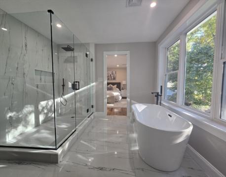 Looking for NEW CONSTRUCTION in a true neighborhood setting near the Commuter Rail? Look no further and welcome to your dream home! Designed with the modern family in mind, this 2025 to the studs renovation & 2nd story addition, in highly desirable Greenlodge neighborhood, is a rare find! High ceilings and an open floor plan greet you to the main level. A dedicated mudroom makes for a seamless transition into the living room w/ fireplace and to the entertainer's delight a chef's kitchen equipped with large island, SS appliances, pot filler, sleek quartz countertops and backsplash! 1st floor bedroom & full bath are perfect for guests! Dedicated office and main level family room with sliders to a large deck, perfect for unwinding and entertaining family & friends! Primary bedroom features double walk in closets and a spa like bath with soaking tub, shower & double vanity! One car garage, EV charger ready, minutes to Legacy Place, University Station and less than 5 miles to Blue Hills!