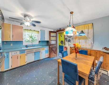 Spacious 5 Bedroom, 2 Full & 1 half baths. Flexible Floorplan - rare opportunity with tons of Potential!! This home has two separate kitchens/living spaces & offers the ability for a separate au paire, in-law, home office or possible extra income ADU with proper permitting! Perfect for multi-generational living, work from home office or growing families. Generous corner lot, 2 separate entrances & driveways, plenty of off street parking! Enjoy sustainable living with the fully installed solar panel system, significantly reducing your monthly utility bills, a plus for environmentally conscious buyers! Downstairs, a full basement awaits refinishing- Enjoy all the benefits of Dedham, living in this wonderful neighborhood known for it's excellent schools, convenience to Legacy Place, shopping, movie theatres, fine dining, parks, commuter rail, easy access to Dedham town Center and all major routes. Don't miss this wonderful opportunity to create lasting value in a wonderful neighborhood!