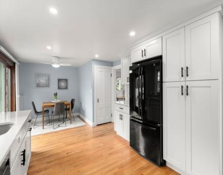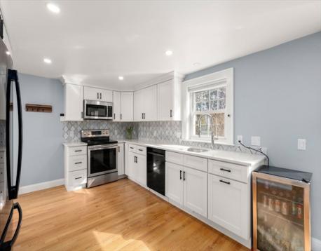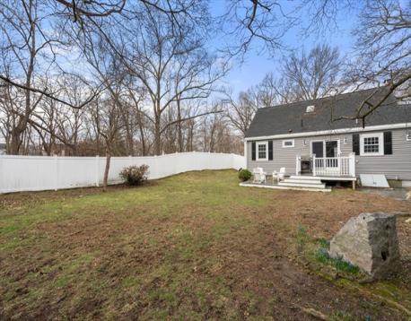 This beautifully maintained Cape in the Endicott section of Dedham has it all. The updated home features a stunning kitchen with white shaker cabinetry, stainless steel appliances, quartz countertops, and a stylish tile backsplash. The dining area flows seamlessly to a newer deck and a fenced in yard—ideal for entertaining and letting the kids/pets run around. The first floor offers two spacious bedrooms and a modern tiled full bath. Upstairs, a thoughtfully renovated primary suite boasts double closets and a skylight. The finished lower level adds valuable living space with laundry, bonus room, and full bath. Major updates include newer siding, windows, roof, HVAC, exterior doors, and tankless hot water. There is a one car attached garage and a shed for storage. Set on a landscaped corner lot with flowering trees and perennials. Conveniently located near the commuter rail, Endicott Estate, top schools, and major routes—this home is a must-see!