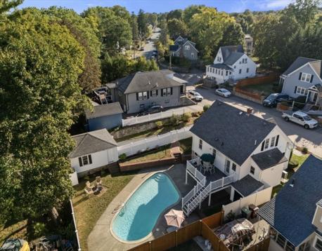 More than meets the eye! This well-maintained, updated 3 bed/2 bath cape offers three levels of living, plus ample storage throughout. Enter through a slate-tiled foyer, perfect for coats and shoes. The main level boasts a beautifully updated kitchen, dedicated office space, first-floor bedroom/den, full bath, and Craftsman style interior trim living room and dining room . Upstairs, you’ll find two generously sized bedrooms with storage and potential to expand or add an additional bathroom. The finished basement includes the second full bath, dedicated laundry room, abundant storage offering flexible space for additional family room, recreation, or a home gym. Step outside to your private backyard retreat, complete with an in-ground pool and spacious deck perfect for entertaining or relaxing. A two-car detached garage and 5-car paved driveway adds even more convenience and space. Commuters-min to Boston & 128/95. All updates on feature sheet attached. OH: 3/7and 3/8 from 12–2.