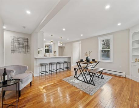 WOW!!! Classic New England Colonial where timeless architecture meets modern elegance. Located in one of Dedham’s most coveted neighborhoods, this newly renovated 4 bed, 3 bath home offers nearly 2,000 sq ft of thoughtfully designed living. The stunning chef’s kitchen features waterfall quartz countertops, a matching quartz backsplash, stainless steel appliances, and chic gold hardware, opening to a flexible dining or lounge area ideal for open concept living. A large sunken living room adds a luxurious custom touch.The first floor offers a primary suite, perfect to separate kids and adults. The second floor offers three large bedrooms with another Primary en-suite option and an additional updated bathroom. Updates include refinished hardwood floors, recessed lighting, new energy-efficient windows, New hot water tank, all new plumbing and electrical, all new paint. There is a large two-car garage, and enormous unfinished basement with potential for future expansion. This won't last!