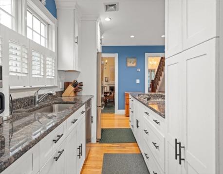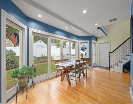 Expansive 6 bedroom, 2.5 bath residence, perfectly situated on a professionally landscaped lot with mature plantings framed by a stone wall. This home blends timeless New England charm with thoughtful modern updates and a layout designed for comfort, functionality and style. Inside architectural features include tall ceilings,& classical fireplaces. The living and dining rooms are elegant and spacious, perfect for hosting friends and family. The heart of the home is the updated open concept kitchen with a wood burning fireplace and sliders creating a seamless indoor-outdoor living experience. A separate home office on the first floor provides privacy for remote work or study. 2nd floor contains 4 large corner bedrooms and 2 full baths.3 additional rooms are located on the 3rd floor perfect for guests, playroom or an office. Located within minutes to Dedham's village center, local schools, the commuter rail, & Legacy Place with its theater, restaurants and shopping.