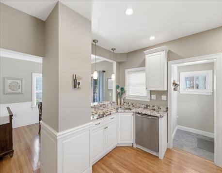 Opportunity knocks! This unique, 1940's Cape style home blends classic charm with thoughtful updates. A gracious foyer with bay-window opens into the sun-splashed living-room with distinguished tall ceilings and beautiful hardwood flooring. A tastefully renovated kitchen boasts stainless steel appliances, granite countertops, and a picture window with bar-top into the dining area, creating an open, connected feel. Step through the slider out to a newer composite deck with steps down to a patio and a private backyard oasis, beautifully landscaped with mature plantings and a shed. A modern full bathroom and 1st floor bedroom complete the 1st floor. An arched doorway leads to the 2nd level with 2 sizable bedrooms. The garage under steps into a clean basement with newer vinyl flooring, den or office/tv space with laundry and cedar closet. Commuters delight! Walk to the train and easy access to major highways. Nearby restaurants, shopping at Costco, Legacy & University Station!