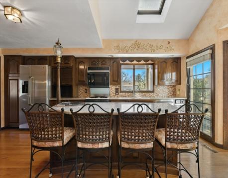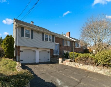 Rare offering! Sprawling (72'), one owner,10 room, 4 bedroom, 3 bath split level home offering two full levels of gracious living space that's just perfect for a growing or extended family. Located in highly sought after neighborhood, this home features a big formal living room with marble fireplace, dining room with sliders to balcony overlooking gorgeous yard, oversized fully applianced cherry kitchen with sunny dining area, granite island and lofted ceilings with skylights. There's a huge primary suite including sitting room with fireplace, big bedroom and huge full bath. Three additional bedrooms and full bath complete the upper level. Incredible finished lower level includes fireplaced family room, bonus room with oversized wet bar, laundry and well-defined storage. Great ADU potential! There's 3 zone split ac, hardwood floors, gorgeous landscape, walkways and cabana. First showings at open house on Sunday, April 19 from 1-3 pm. Offers due on Wednesday, April 22 at 2:00 pm.