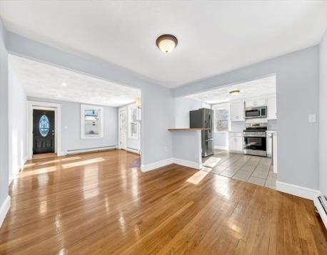 Sunny 7 room, 2 bedroom ranch located in super convenient Dedham neighborhood! Features include a spacious fireplaced living room open to big dining room, fully applianced eat-in-kitchen, 2 bedrooms and updated full bath The lower level is beautifully finished and includes a big family room, den and half bath and has great ADU potential. There's hardwood floors on the first floor and plank flooring in the lower level, one car garage and off street parking. Updates include siding, roof, 2-zone gas heating system, hot water tank, 200 amp electrical service and more! First showings at open house on Sunday, March 8 from 1-3 pm. Offers are due on Wednesday, March 11 at 2:00 pm.