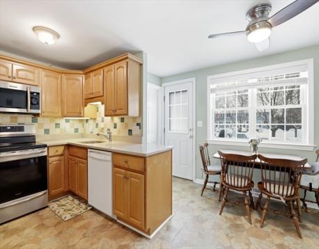 This Charming 2 Bed 1.5 Bath Townhouse Condo is everything you need and move-in ready. Multiple modern updates; See Attached List of Updates 2022-2024 which include refinished hardwood floors (2022), New roof (2023), New induction oven (2023). This unit has an open concept layout on the first floor with a spacious livingroom; well-appointed eat-in kitchen with ceramic tile backsplash, wood cabinets, a deep undermount stainless sink with a convenient half bath. The back door leads to a private deck, 2 deeded parking spaces and a common grassy space for gatherings and anytime enjoyment. The upstairs has two bedrooms and a full updated bath with hall linen closet and generous attic storage. Close to shopping center with restaurants, cinema, new Manor playground and Endicott and Readville Commuter rails, Legacy Place, short ride to highway. This is a must-see for first time homebuyers looking to transition to home ownership or buyers looking to downsize or invest. Make yourself at Home!