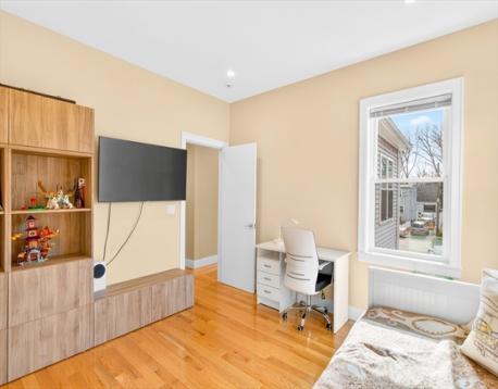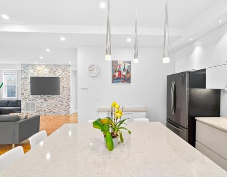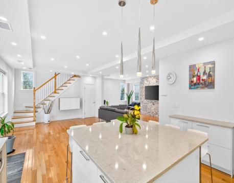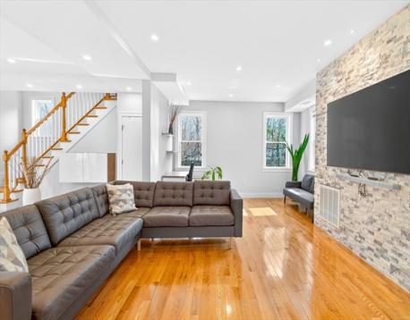 Brand new full renovation! Just unpack and enjoy. This stunning 5-bedroom, 3.5-bath Colonial has been completely transformed with high-end finishes throughout. The open-concept main level wows with a chef's kitchen featuring a quartz waterfall island, high-gloss cabinetry, stainless appliances, and pendant lighting, all flowing seamlessly into the dining and living areas with a statement stone accent wall. Deck off the back for easy outdoor living.Upstairs, the primary suite offers a walk-in closet and spa bath, joined by three additional bedrooms and two beautifully tiled full baths. Second-floor laundry included. The fully spray-foam insulated walk-up attic provides exceptional storage or future expansion potential. Hardwood floors, recessed lighting, and central A/C throughout. Granite front porch floor! Long private driveway on a 0.34-acre lot. Minutes to Dedham Square, Legacy Place, and the commuter rail. Nothing to do but move in. BONUS: EV CHARGER!