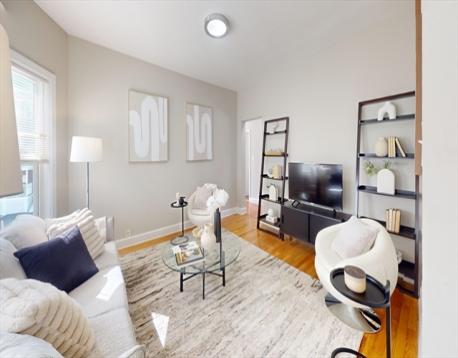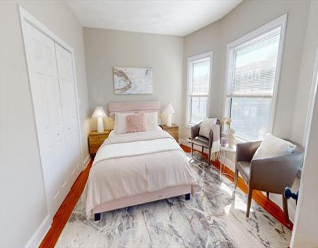 Modern SWEET SUITE of a deal in a quiet, yet convenient neighborhood. Three Spacious Bedrooms grace this modern Suite on the 2nd floor of a 3fam condominium. Gleaming Hardwood Floors & Freshly painted walls. Maple kitchen with brand new stainless steel appliances, granite counters and sink. Ceramic Tile bathroom with sliding glass shower doors. Double width closets in amply sized bedrooms. Open Air rear porch. Your washer/dryer hookups and a large storage room are in the basement. One car off street parking. Yard. Steps from conveniences of public transportation, shopping and restaurants. WALK SCORE of 94! Very low condo fee of $200. 3D virtual tour is attached and on listing broker website. OPEN HOUSE Saturday 12-2pm and Sunday 1-3pm. Stop and BUY!