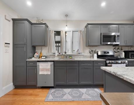 This beautifully updated and well-maintained 2-family home offers the perfect blend of comfort, convenience, and modern living. Both units have been tastefully renovated in 2021 and feature thoughtful upgrades throughout.The first-floor unit features 2 bedrooms and 1 bath with gleaming hardwood floors, high ceilings, and a beautifully remodeled kitchen with modern cabinetry and finishes.The second-floor unit spans two levels of living space with 3 bedrooms and 1 bath. Enjoy an open-concept layout featuring a spacious living room with an electric fireplace, granite countertops, and an updated kitchen perfect for entertaining. Additional highlights include tankless Navien hot water systems for each unit, designated laundry for each unit in the basement, and 2-car driveway parking with additional on-street permit parking available. Conveniently located near public transportation, shops, and restaurants—this turn-key two-family is ideal for both investors and owner-occupants alike.