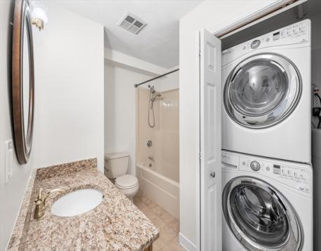 Experience vibrant living in Everett! This stunning condo features two spacious bedrooms with ample closet space, including a serene primary retreat with an ensuite bathroom and private balcony for breathtaking skyline views. The open-concept living and dining area is perfect for entertaining. Cook in the modern kitchen with granite countertops, stainless steel appliances, and abundant counter space. A sizable second bathroom includes a washer and dryer. This condo includes a carport, and the building has an elevator for easy access in a professionally managed community. Everett is a lively city near Boston, with beautiful parks, exciting entertainment like Encore Boston Harbor, a local brewery scene, and shopping at Gateway Center. Outdoor enthusiasts will enjoy easy access to community trails like the Everett Riverwalk and Northern Strand Community Trail, ideal for walking, biking, and outdoor enjoyment. Embrace urban convenience with community charm in your new Everett home!
