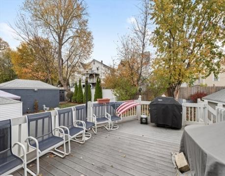 Welcome to this beautifully maintained home in the desirable Jefferson Ave neighborhood. Enter this warm and welcoming home through the fully enclosed front porch, with a swing! The front entrance brings you to the spacious living room that opening directly into the dining room with a beautiful built in china cabinet that allows for lots of storage. The beautiful kitchen is recently updated with newer cabinets granite countertops, kitchen also boasts a side entrance with a mudroom entrance. Two bedrooms and a full bathroom with Jacuzzi tub complete the first floor with Main Level Central Air. The second bedroom w/(ANDERSON SLIDER) opens to a huge deck overlooking the fenced-in backyard.Second floor has 3 large heated BONUS rooms, Full heated basement waiting to be finished, great laundry space, workspace, so much much additional space, use your imagination. A detached garage is a perfect addition to this property with a driveway that easily fits 3-4 cars. 3 heat zones/2 cooling zones