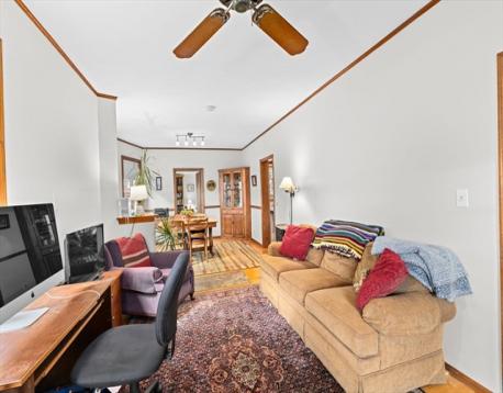 This lovingly maintained Colonial with a tasteful front porch offers 4 bedrooms, 2 full bathrooms, and 1422 sq ft of living space ready for you to move right in! Step inside and you’ll appreciate the easy flow of the first floor with a welcoming entry way leading you to a cozy living room, perfect for relaxing, and a bright and sunny dining room, ideal for entertaining. Hardwood floors throughout all living areas. Off the dining room is a nice kitchen space with a large pantry area. Depending on your needs, the first floor bedroom could also be used as a den, office, playroom, or exercise room. Additionally, there is a convenient full bathroom on the first floor. Upstairs, you will find 3 ample sized bedrooms, each with good closet space, and another full bathroom. Large cedar closet in basement. The fenced-in yard provides a nice outdoor space with lots of opportunities to further enhance it for gatherings with friends and family. The extra large driveway allows parking for 6 cars.