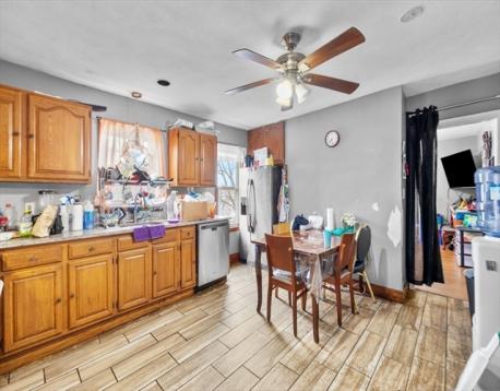 Excellent opportunity for owner-occupants or investors! This well-maintained two-family property offers strong rental income potential. The property features separate utilities, a clean basement with laundry hookups, and a two-car garage. Enjoy a fenced backyard and rear porches for both units, providing excellent outdoor space. Both units feature granite countertops and hardwood flooring throughout.Conveniently located near Hood Elementary School, Thurgood Marshall Middle School, and Lynn English High School, with easy access to Lynn Station on the MBTA Commuter Rail, providing convenient service to Boston. The property is being sold as-is. Unit 1 is tenant-at-will paying $2,600 per month. Unit 2 is currently vacant with an estimated rent of $3,000 per month and will be delivered vacant at closing. The property is equipped with gas heat and gas-fired hot water.
