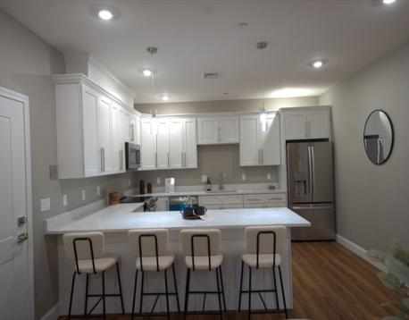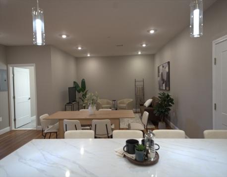 New Construction in Lynn’s Diamond District. Luxury 2-bed, 2-bath condominium offering modern coastal living just blocks from the beach. Enjoy a spacious open-concept layout with 9 ft. ceilings, vinyl plank flooring, and abundant natural light. Gourmet kitchen features stainless-steel appliances, stone countertops, large peninsula, and custom soft-close cabinetry. Primary suite with private bath; beautifully tiled bathrooms; in-unit laundry hook-up. Secure building with intercom and surveillance. Garage parking available (sold separately, limited availability) plus ample on-street parking. Conveniently located near public transportation, beaches, parks, dining, and major commuter routes. One-year builder’s warranty included.