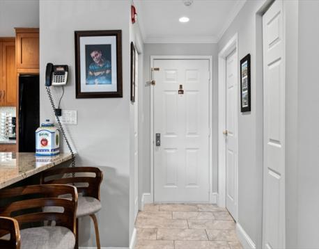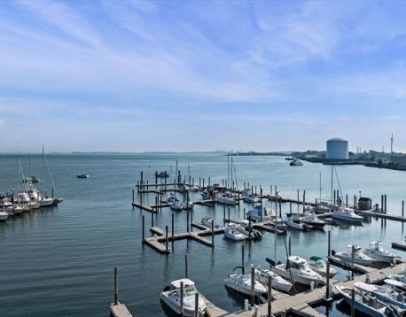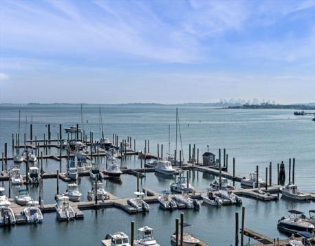 EXPERIENCE REFINED ONE-LEVEL WATERFRONT LIVING at Seaport Landing. This spacious, elegantly updated marina-front residence offers two large bedrooms, walk-in dressing room with tons of storage, two sleek bathrooms, and captivating views of the Boston skyline. Located just steps from the sands of Nahant Beach, the home blends coastal serenity with urban accessibility. The open-concept interior features a renovated kitchen, upgraded flooring, and sophisticated finishes throughout. A private, newly redone balcony overlooks the marina, creating the perfect backdrop for sunset cocktails or quiet mornings by the water. Premium amenities include professional management, fitness center, and clubroom, while recent upgrades—hurricane windows (2024), renovated baths (2023), and custom closet (2023)—ensure peace of mind and modern comfort. Two deeded parking spaces, including one in garage, complete this exceptional seaside offering.