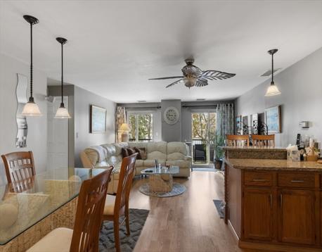 Seaport Landing offers the best of coastal living with this bright 2-bedroom, 2-bath condo featuring an open floor plan, hardwood floors, and a kitchen with granite countertops and ample cabinet space. The spacious primary bedroom includes a walk-in closet and en suite bath, while the private balcony provides a perfect spot to enjoy the sea breeze. Residents can relax along the waterfront boardwalk and enjoy easy access to shops, dining, and major routes.