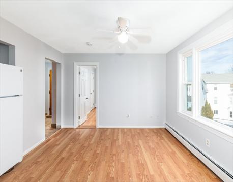 This second-floor, well-designed one-bedroom condo is convenient, stylish, and truly move-in ready. Freshly painted throughout, the unit features an updated bathroom and a newer wall A/C. The unit gives bright living space, boasts hardwood floors, tall ceilings, excellent closet space, and abundant windows that fill the unit with warm afternoon light, creating an open and airy feel throughout the spacious living/dining area and bedroom. Perfect for owner occupancy or investment, the HOA fee includes heat, hot water, water/sewer, trash removal, storage space, and deeded parking # 20. Ideally located near coastal walking trails, surfing spots, public, the commuter rail, and Logan Airport, this home combines lifestyle and convenience. Lynn is rapidly emerging as a foodie destination, with acclaimed restaurants such as Nightshade Noodle Bar (Michelin Guide Recommended), The Blue Ox, and several popular cafés and coffee shops nearby. A fantastic opportunity to own in Lynn!