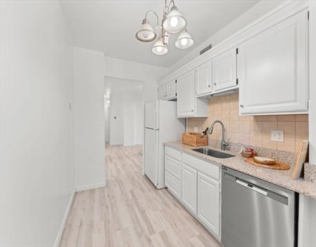 Welcome to the highly sought after Stadium Condominiums where comfort, space, and lifestyle come together. This beautifully renovated first floor corner unit offers exceptional privacy, natural light, and a highly functional layout. A welcoming entry foyer features three closets, including convenient in unit laundry. The expansive living and dining area provides outstanding flexibility for both everyday living and entertaining. A desirable California split bedroom design positions each bedroom on opposite sides of the unit, creating ideal separation and privacy. The spacious primary suite offers a generous walk-in closet and a well appointed ensuite bath with a walk-in shower. The second bedroom is equally sizable and features a large double door closet. Significant recent upgrades include a new heating system, new water heater, new windows, and a new sliding glass door, providing improved efficiency, comfort, and long-term peace of mind for the next owner. Schedule your showing today!