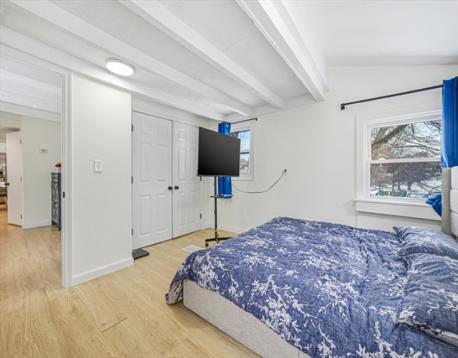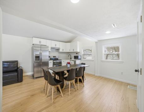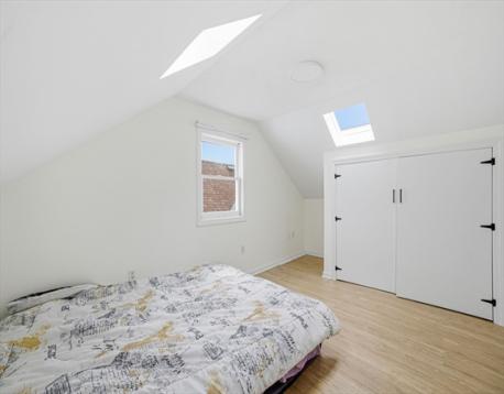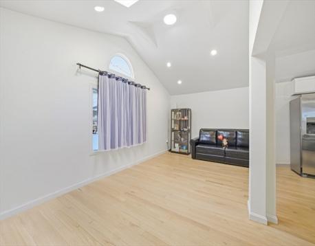 Welcome to this bright, sun-drenched home with lovely views of Flax Pond! The open-concept living and kitchen area features soaring cathedral ceilings and multiple skylights, creating an airy, inviting space filled with natural light. The kitchen is beautifully appointed with stainless steel appliances, white shaker cabinets, and granite countertops.The partially finished basement offers flexible space, perfect for a family room, home office, or workout area. The upper level features two, possibly three, bedrooms, including a pass-through room ideal for a nursery, office, or creative space. The spacious main bedroom is a true retreat, flooded with sunlight throughout the day. A wonderful opportunity to enjoy comfortable living with scenic pond views!