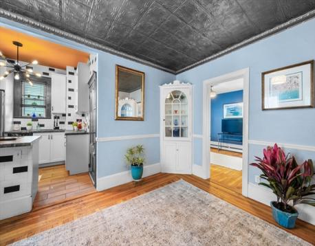 Location! Location! Welcome to 201 Ocean Street! Historic Tudor Style Home Located In Coveted Diamond District! This Spacious First Floor Condo Offers 6 Rooms, 3 Bedrooms, and 1 Full Bath! Tastefully Decorated and Loaded With Period Details Throughout! Elegant Fireplaced Livingroom With Hardwood Floors and High Ceilings, Formal Dining Area With Crown Molding and Plenty of Natural Light Opens To Chef's Kitchen With Shaker Cabinetry, Stylish Back Splash, Brand New S.S. Appliances! Hardwood Floors and High Ceilings! Plenty of Closet Space and Laundry On Site! Deeded Parking! Outdoor Space For Gardening and A Large Wrap Around Porch For Relaxing and Enjoying the Ocean Breezes! This One of A Kind 3 Bedroom Condo Is Truly a Retreat!