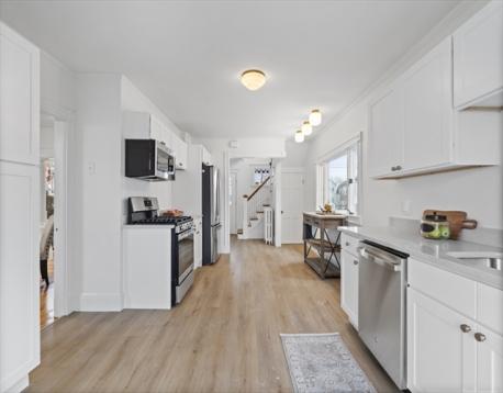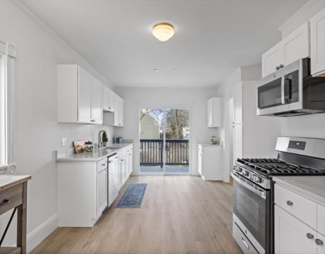 Newly Updated 3 Bed 2 bath on peaceful Fenton Ave in Lynn. Incredible Commuter Location on the Saugus Line. The main two levels feature Hardwood Flooring, Modern Kitchen, and Elegant Lighting Fixtures. The kitchen is designed with utility and style in mind, offering contemporary finishes, ample cabinetry and counter space. The separate dining room and family room are perfect for everyday living as well as entertaining. Both bathrooms are tastefully built for utility and comfort. The finished lower level adds additional living space for owner flexibility. Whether you envision a family room, home office, gym, or guest area, the lower level expands the home’s usability for any homebuyer. New porches in the front and rear, a detached garage for a small car or utility space opens up the paved driveway to make space for all of your guests. A nice sized fenced in backyard and a Brand new Gas Heating System installed in 2025 make this turn key gem perfect for any discerning buyer.