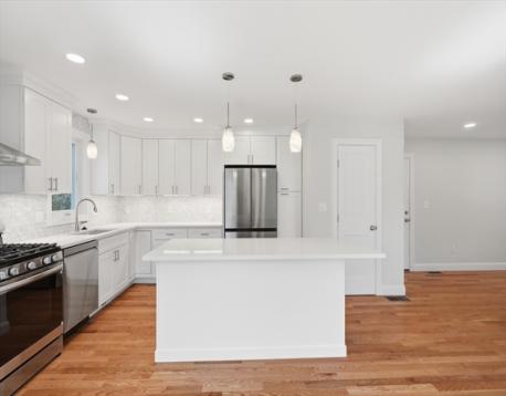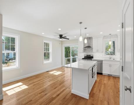 Welcome home to 25 Cumberland Rd, one of Lynn's newest constructions. Tucked away just off of Lynnfield Street with close proximity to the highway and two blocks away from Gowdy Memorial Playground, this beautifully built home opens to a sunkissed open floor plan and the spacious living room, which offers an electric fireplace with media connections. The kitchen layout includes an island with seating, ventilation/hood over gas stove, pendant lighting, and quartz countertops. The second floor houses four bedrooms, including a primary bedroom with ensuite full bathroom featuring double sinks and a soaker tub. Need more space? The full-size, unfinished basement is perfect for expansion if needed! Two-car garage and a lot size of 16,000+ sq ft, this home has it all and then some! Don't miss out on your chance to make this dream house yours!