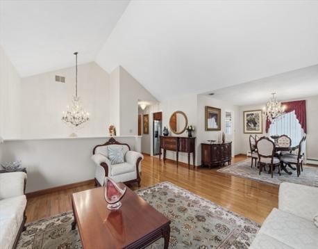 Custom-built split-level home tucked on a quiet cul-de-sac in Ward 1, just moments from Lynn Woods Reservation. The main level showcases gleaming hardwood floors throughout, a bright living room with soaring cathedral ceiling and a formal dining room that flows into the kitchen. The kitchen features cherry cabinetry, stainless steel appliances, ample counter space and a door that opens to a private deck overlooking a serene backyard—perfect for entertaining or morning coffee. The primary suite includes an en-suite bathroom; two additional bedrooms and a full bath complete the main level. The lower level offers a spacious finished family room, convenient half bath and a dedicated laundry room. A large two-car garage provides generous parking, an attached utility room and abundant storage. Mature plantings surround the property, enhancing privacy and curb appeal. Enjoy easy access to the highway, Rte 1, nearby restaurants and shopping. A wonderful blend of comfort, functionality.