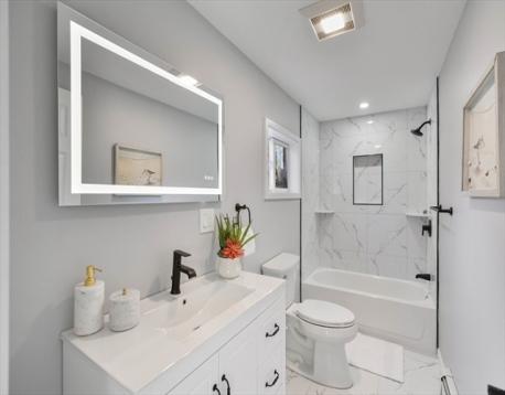 Experience modern living in this beautifully renovated home located just moments from tranquil Flax Pond in desirable Ward 1. Sun-drenched and stylish, the first floor welcomes you with a fireplaced living room, elegant dining area, inviting family room, bonus room, and a thoughtfully updated kitchen. Refinished hardwood floors, fresh paint, and extensive system upgrades—including windows, roof, heating, and electrical—create a truly turnkey experience. Step outside to a charming deck overlooking a partially fenced yard, perfect for morning coffee or quiet evenings. Upstairs, an expanded main bedroom, two additional bedrooms, and a brand-new full bath complete the second level. The full basement offers exceptional potential and is ready to be finished to suit your needs—whether a home gym, recreation room, or additional living space. Energy-saving solar panels add efficiency and long-term savings to this exceptional property.