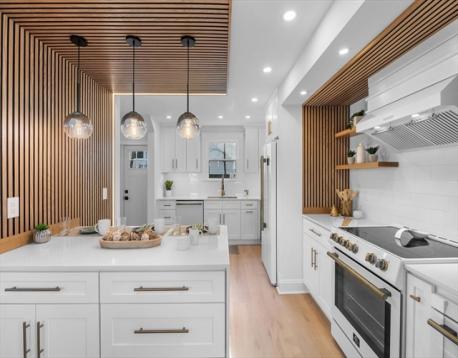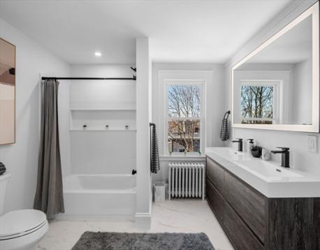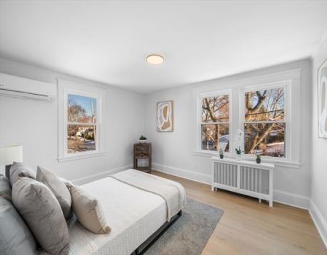 One-of-a-kind, Corner lot, beautifully renovated 4-bedroom, 2.5-bath home where classic design meets modern elegance. Featuring wide-plank luxury LVP flooring, open-concept living, a new roof, new siding, new windows, and a 5-zone ductless mini-split heat pump system for year-round comfort. The chef’s kitchen boasts a waterfall island, Calacatta-style quartz countertops, European white and champagne-handle appliances, and custom white oak shelving with classic white cabinetry. Kitchen, dining, and living areas flow seamlessly for entertaining and everyday living, with a cozy fireplace in the first-floor living room. The serene primary suite includes a fireplace and spa-like bath. Additional highlights include designer lighting, elegant tile work, custom woodwork throughout, and a one-car garage with extra storage.