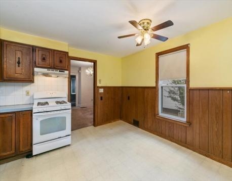 this 1444 square foot colonial is a diamond in the rough, exterior in very good condition, interior is dated, clean and livable, ready to update all at once or over time, Gas FHA heat, gas hot water, electric panel is 100 amp with breakers. 2 full baths on the first floor, older cabinet kitchen, and a vaulted ceiling newer bonus room in the back, cabinet kitchen. Floor plans in Pictures. property in an estate, seller has not lived in the property and makes no statement of condition, property sold as-is, buyers to use due diligence.