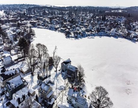 A stylish and inviting home, just four years young, featuring picturesque pond views and refined finishes throughout. The first floor features an open-concept kitchen with a striking center island and rich hardwood floors, ideal for everyday living and entertaining. The second floor includes two bedrooms, highlighted by a primary bedroom with two closets and an attached bath. A finished walk-out basement adds flexible living space with a closet and bathroom, perfect for a home office, guest suite, or media room. Step out to a beautiful pond-side patio, perfect for relaxing or entertaining while taking in tranquil water views and stunning sunsets. Enjoy year-round recreation with boating, swimming, and fishing in warmer months, plus winter skating—all from your own backyard.
