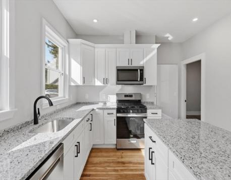 Meticulously Renovated Oversized Two Family With Modern Updates Throughout. First Floor Unit Offers 2 Bedrooms, Living Room, Gorgeous Brand New Kitchen, White Shaker Cabinets, Granite Counter Tops, SS Appliances, Large Island And Bathroom With Tiled Shower And A Tub. Second Unit Spans Two Levels Of Newly Renovated Living Space, 5 Bedrooms, 2 Full Baths. Second Floor Features 1 Bedroom Plus Bonus Bedroom/Office Space, Living Room, Den, Gorgeous Brand New Kitchen, White Shaker Cabinets, Granite Counter Tops, Stainless Steal Appliances, Large Island And Modern Bathroom With Tiled Shower And A Tub. Main Bedroom Located On The Third Floor With En Suite Custom Bathroom, Beautiful Tiled Shower And A Tub, Plenty Of Closet Space. Hardwood Floors, Recessed Light, And Freshly Painted Throughout The Entire Home. Everything Is New In The Apartments. New Electric, New Plumbing, Large Driveway With Parking For 8 Cars, Great Sized Yard. Last House On The Street.