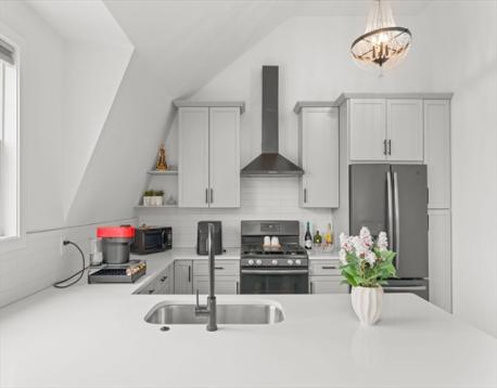 Welcome to The LUXE at Summer St, an exceptional 2020 construction where design, convenience, and quality meet. This 2 bedroom, 1 bath unit offers a refined living experience with premium finishes throughout. Soaring cathedral ceilings and statement lighting set the tone for upscale living. The stylish kitchen features quartz countertops, high end cabinetry, graphite appliances, and a 5 burner gas range perfect for everyday living and entertaining. Hardwood flooring, soundproofed walls, and in unit laundry enhance comfort and convenience. Enjoy a beautifully sized private patio, ideal for relaxing or entertaining, along with a deeded off-street parking space. Energy efficient systems include central heating, on demand hot water, and central air, plus keyless entry. Located in desirable West Lynn with easy access to Boston, bus routes to Wonderland and Haymarket, and nearby bike and walking paths.