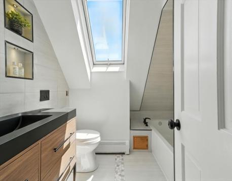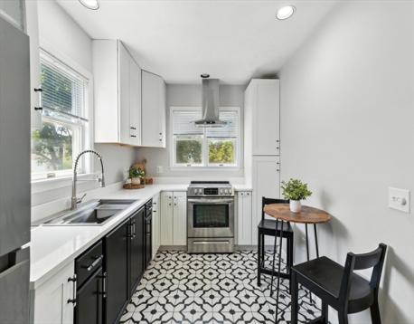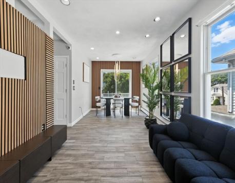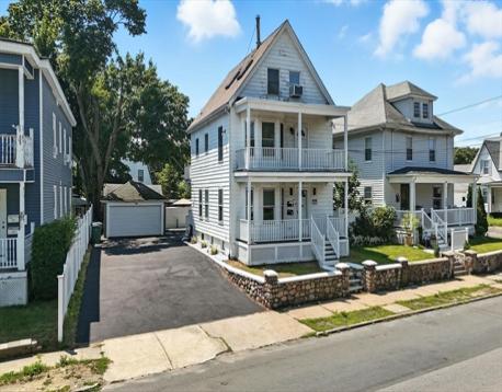 Fully remodeled two-family home just minutes from the ocean, blending modern elegance with timeless charm. Located only two miles from the coast, this property offers both a desirable lifestyle and strong investment potential. Unit 2 showcases contemporary upgrades throughout, including a sleek kitchen with quartz countertops, newer cabinetry, stainless steel appliances, and ceramic tile finishes. Recessed lighting, stylish bathrooms, and updated tile flooring create a bright, sophisticated space. Enjoy a private rear deck ideal for relaxing or entertaining. Unit 1 offers freshly painted interiors, gleaming hardwood floors, and a full bath—perfect for owner occupancy or rental income. The spacious backyard is ideal for gatherings, barbecues, or unwinding outdoors, with plenty of room for gardening or play. A two-car garage and oversized driveway provide ample parking.