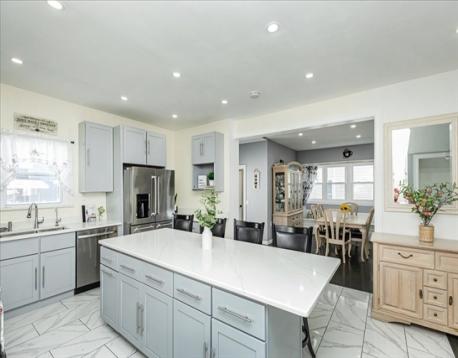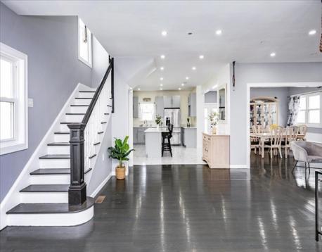 Welcome to 75 Moulton St, Lynn! This stunning colonial has been meticulously remodeled with exceptional attention to detail. Spanning 3 beautifully finished levels, it offers the perfect blend of luxury & functionality. The main level welcomes you with a bright foyer & a spacious den ideal for an office or mudroom, leading to an open-concept living room, formal dining area, & a modern kitchen with quartz countertops, a large island, & newer appliances. A half bath with laundry completes this level. The 2nd floor offers 3 generous bedrooms, including a main suite with private bath featuring double vanity, glass shower & soaking tub, plus another full bath. The finished attic adds 2 extra bedrooms, perfect for guests or flex space. The oversized basement offers potential for a legal ADU/in-law apartment. Outside, enjoy a new deck, fenced yard & above-ground pool, perfect for entertaining. All-new HVAC, electrical, plumbing, windows, roof & more! Off-street parking for 6+ cars!.