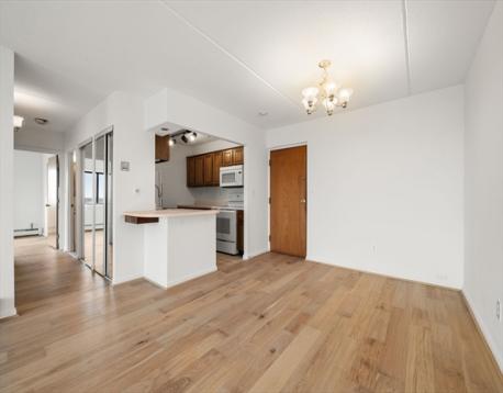 Located at 95 Nahant St U:39, in the coastal city of Lynn, Massachusetts, this inviting home offers a fantastic opportunity to embrace comfortable condominium living with peaceful ocean views. Ready to move in, this (top) fifth-floor corner property is waiting for you. The open floor plan creates a welcoming atmosphere, perfect for both relaxing and entertaining, where the living spaces blend seamlessly. From the main living area, access your private balcony to enjoy fresh air. Prepare culinary delights in the efficiently designed kitchen, complete with a kitchen bar that offers additional counter space and seating. The primary bedroom provides a private sanctuary, featuring the convenience of an ensuite bathroom. This condominium provides two bedrooms and one full bathroom, along with a half bathroom. The unit has been refreshed throughout with new engineered hardwood floors, fresh paint, and new fixtures. A must-see!