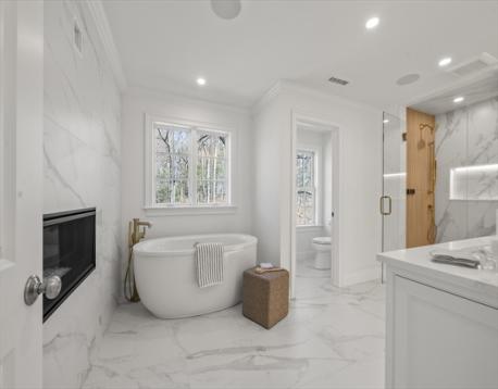 Experience unparalleled living in this new-construction luxury home offering four impeccably finished levels and an effortless blend of elegance, comfort, and modern functionality. The heart of the home is a gourmet chef’s kitchen with a dedicated pantry, premium appliances, and seamless flow into the living and dining spaces. A stylish wet bar and wine/beverage refrigerator elevate your hosting experience, while the stunning wrap-around farmer’s porch invites relaxation from sunrise to sunset.With five spacious ensuite bedrooms, this residence is designed for both refined entertaining and everyday living. Work and wellness are thoughtfully integrated with a private office and home gym. Additional space offers endless possibilities—media room, playroom, guest suite, finished storage, or all of the above. Step outside to discover expansive outdoor space with a patio and gas fire pit, perfect for gatherings. A heated three-car garage completes this exceptional property.