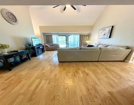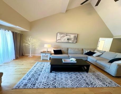 Welcome Home to this BEAUTIFUL TOP PENTHOUSE 'GARDEN STYLE' CONDO at Desirable "CEDAR POND"!!!...This Beautiful Condo offers 2 Bedrooms, 2 Full Baths with Private Deck...Welcoming FOYER w/Tile Floor..FULLY APPLIANCED KITCHEN w/SS Appliances...DINING ROOM w/Hardwood Floors...LIVING ROOM wVaulted Cathedral Ceilings & w/Slider leading to PRIVATE DECK ...GOOD SIZED MAIN BEDROOM w/Walk-In Closet and BEAUTIFUL MAIN BATHROOM w/Tiled Shower & Tile Floor...Good Sized 2nd BEDROOM w/Closet & Built-Ins...FULL BATH w/Tub & Shower & Tile Floor...Washer/Dryer Hook-ups in Unit...1-CAR COVERED PARKING w/Storage Room plus 1 Off-Street Parking Spot...Amenities: Pool, Clubhouse, Gym, Tennis Courts, Bocci...Convenient to Rt 1, 128, 95..A PLEASURE TO SHOW!!!***1ST SHOWINGS Sat 4/25 & Sun 4/26 from 1-3pm***