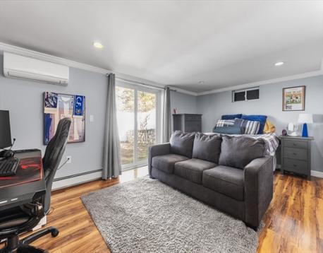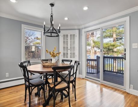 Waterfront with Water views!! Thoughtfully updated pristine ranch with open concept provides wonderful and flexible space throughout. Beautiful Kitchen with SS appliances leading into scenic dining room and living room overlooking Suntaug Lake with three generous bedrooms and easy flow to the lower level with walkout lower level featuring family room, office, and generous storage and private back yard. This is a can't miss property ready to move in. Intricate details throughout with crown mouldings, hardwood flooring on the main level, central AC, and all the extra amenities that buyer's deserve.