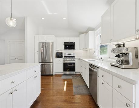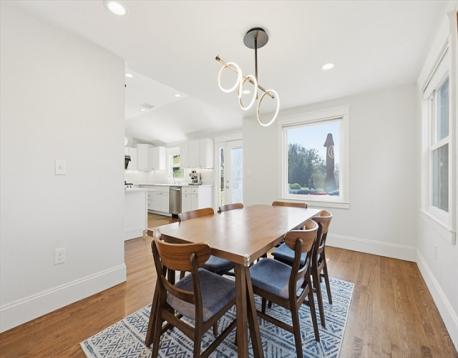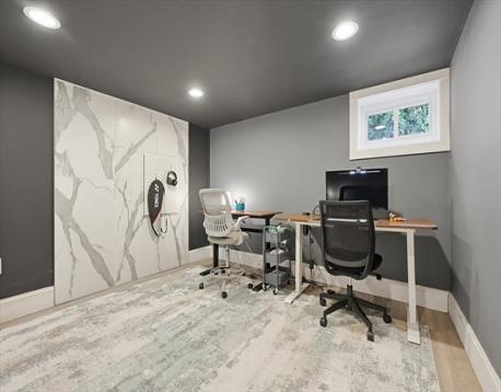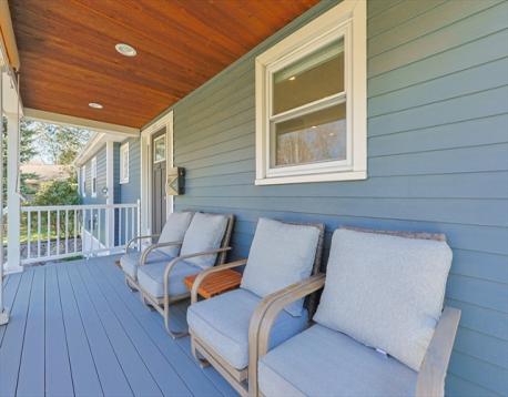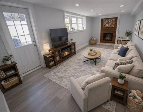 Step into this beautiful Craftsman-style home—truly move-in ready! The open-concept main level is perfect for entertaining, featuring a stunning white kitchen with vaulted ceilings, stainless steel appliances, quartz countertops, abundant cabinetry, and a center island with seating. The kitchen flows seamlessly into a bright family room with vaulted ceilings, recessed lighting, hardwood floors, and a stylish feature wall, plus a sun-filled dining area with oversized windows. Three bedrooms offer hardwood flooring and ample closet space, including a spacious primary suite with walk-in closet and luxurious ensuite bath. The walkout lower level adds a second family room with fireplace, home office, and laundry with half bath. Low-maintenance exterior with composite siding and deck, plus a stone patio with firepit and private backyard—ideal for relaxing or entertaining. Convenient location near town center, library, post office, and major highways. Newer septic.
