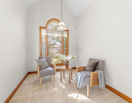 Welcome to this inviting contemporary ranch with soaring cathedral ceilings and easy single level living! This well maintained three bed, three bath home offers a spacious primary suite, sun filled living areas, and a comfortable layout perfect for both relaxing and entertaining. The expansive finished two room basement with full bath provides flexible space with endless possibilities for a family room, fourth bedroom, living area, home office, or game room plus extra storage rooms. A versatile loft adds even more options for work or play. Step outside to a large fenced yard with an oversized deck, ideal for gatherings, along with a two car garage and ample off street parking with room to add more. Convenient location to shopping, dining, and commuting routes. Freshly painted and move in ready with room to make it your own!