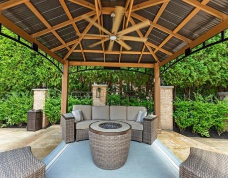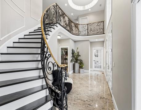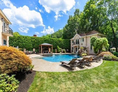 Set at the end of a quiet cul-de-sac, this 5-bedroom, 6-bath residence offers space, privacy, and a true indoor-outdoor lifestyle. A dramatic two-story foyer with a sweeping staircase leads into spacious, defined living areas with a natural flow for everyday living and entertaining. With over 6,300 sq ft, the home includes a finished lower level with a theatre room and recreation space, plus a top-floor bonus area for a gym, office, or studio. A resort-style backyard with an in-ground pool, expansive patio, and a covered pavilion that defines the outdoor living space, plus a private basketball court. A 1,000+ sq ft detached guest house with full kitchen, bedroom, bath, and laundry offers flexibility for extended stays or guests. Convenient access to major routes and nearby amenities. A standout property offering space, function, and a strong indoor-outdoor lifestyle.