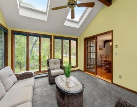 Welcome to 70 Forest Hill Avenue, ideally situated in one of Lynnfield’s most desirable neighborhoods! The main floor greets you with a sun-filled living room and a cozy wood-burning fireplace that flows seamlessly into a dining room, perfect for entertaining. A stunning heated sunroom with cathedral ceilings and skylights provides a serene, year-round retreat, while the warm kitchen features painted cabinetry and a skylight that brightens the space. Three spacious bedrooms and a full bath complete this level. The lower level adds exceptional versatility with a second full bath, family room with fireplace, home office, and a bonus room ideal for a gym or studio. Additional highlights include hardwood floors, an attached walk-in garage, a circular driveway, and a beautifully landscaped lot, abutting conservation land! Conveniently located near Lynnfield Center and all three top-rated schools, this home offers the perfect blend of comfort, style, and LOCATION! Don't miss it!