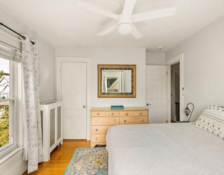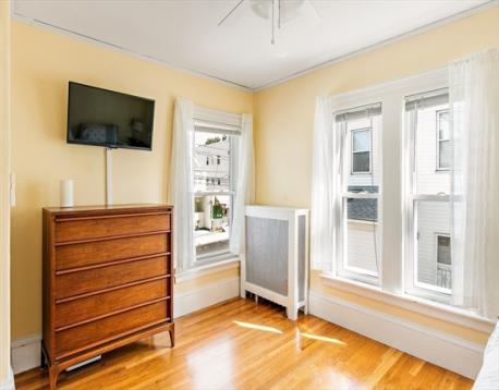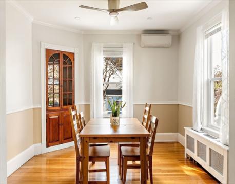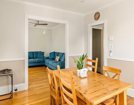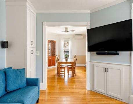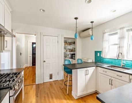 Enjoy suburban comfort & city convenience in 4 bed, 2 bath updated Colonial under a mile from bustling Malden Ctr w/ MBTA Orange line station, bus routes, vibrant dining & shopping! Beautiful hardwd floors, high ceilings, energy saving mini-splits A/C-heat & solar panels. Bright & airy kitchen w/ glass front white cabinetry, stone countertop, peninsula bar seating & gas range w/ exterior vent. Organized walk-in pantry leads to convenient laundry room. Full bath off mud-room. Dining room w/ elegant hutch has open floor plan to living room w/ cozy built-in storage window bench. Enclosed porch bonus space, perfect for office or sitting area. 2nd flr w/ 3 bedrms & full bath. Delightful knotty pine staircase leads up to 3rd flr w/ views of Boston skyline adding 4th bedrm & family room w/ stylish accent walls & built-in shelves. Fenced yard w/ Trex deck, shed, thriving plantings & birdlife is ideal spot for relaxing. Off street parking driveway. Near I-93. Make this well-loved home yours!