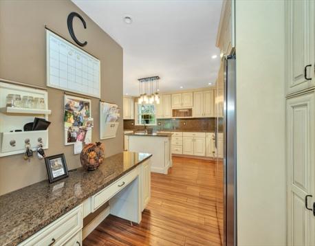 Tucked away on a quiet cul-de-sac, this hidden gem offers rare privacy & a welcoming neighborhood vibe - think flat streets perfect for bike rides or evening strolls. Inside, value meets lifestyle w/an open-concept main level centered around a beautifully reimagined kitchen (approx. 10 yrs ago). Highlights include a copper sink, prep island, pot filler, wine fridge, ice maker, granite counters, high-end appliances, and a bonus mudroom nook and desk space. The dining and living rooms (with faux fireplace) overlook the backyard through the rear wall of sliding glass doors. A half bath & versatile den/office/playroom complete the main level. Upstairs, four bedrooms feature generous closets & a nicely updated full bath with walk-in tiled shower. While the interior is move-in ready, it's being sold "AS-IS" & a little exterior TLC will go a long way - the farmer's porch is adorable and the yard has incredible potential, especially with completion of the partial waterfall feature!
