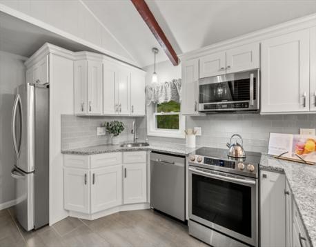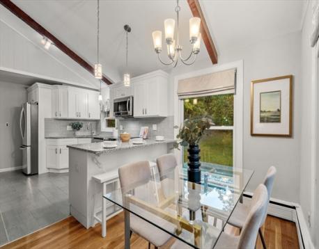 Tucked on a serene, tree-lined street, this move-in-ready single family delivers an exceptional blend of space, design & privacy with a country setting just moments from Boston. 2020 kitchen stands out w/stainless appliances, granite counters, breakfast bar & seamless flow into the living & dining spaces highlighted by soaring 12-foot vaulted ceilings, exposed beams & striking architectural detail straight out of a design magazine. Three generously sized bedrooms, updated windows & gleaming wood floors round out the main level. The finished lower level features a fireplace, full bath, office, bedroom & strong ADU or in-law potential. Outside, enjoy a private 1.29-acre setting w/lush lawn, curated gardens, stonework, deck & mature landscaping, ideal for summer BBQs, crisp fall evenings, or quiet outdoor living. Two commuter rail stations close by, access to Rt 1, this home offers a refined mix of comfort, privacy & convenience in a truly special setting. OH Sat 11:30-12:30, Sun 12-1:30