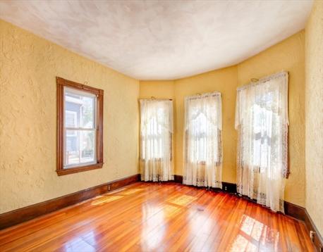 Tremendous opportunity in this large Malden 2 family! Situated in the heart of Malden, this home offers easy access to restaurants, shops, public transportation & Boston. The spacious 3 bedroom upstairs unit has 2 levels: double parlor w/ heart pine flooring & fireplace, applianced eat-in kitchen, bedroom w/ closet & extra walk in closet & f bath w/ ceramic tile floor. On the top floor, kneewall storage everywhere in both the large common room w/ vaulted ceilings, wooden architectural details & pendant lighting & in the 2 generous bedrooms. The 1st floor unit is spacious w/ 2 bedrooms, kitchen, living room & full bath. The wide open basement has a double utility sink, washer & dryer, two natural gas heating/cooling units, natural gas hot water tanks, circuit breakers & public water & sewerage. Upgrades include new windows, architectural roof, vinyl siding & mortared foundation. Fully fenced w/ gated driveway for 3 & a stucco 1 bay garage. Being delivered vacant and in as-is condition.