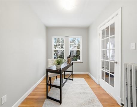 This beautifully updated Colonial is ready to welcome you home, with a prime location perfectly set on a quiet street in the desirable Lawrence Estates neighborhood. Gather with family in the sun-filled living room with a fireplace or enjoy special meals in the open concept dining room, as the hardwood floors unify the space. A French door opens to the private office with a bay window and a recently added bathroom full of modern style, featuring a tiled shower. The chef will love the inviting, open concept kitchen with granite countertops, SS appliances, and a breakfast bar island. Step outside to relax on the deck while enjoying the tranquil surroundings in the fully fenced, private backyard with a grassy area and lots of space for gardening. Upstairs, the primary and two more light-filled family bedrooms await, all with hardwood floors and easy access to the updated full bathroom with a tub/shower. Walk to Medford Square, bus stops, shopping, and Middlesex Fells with walking trails