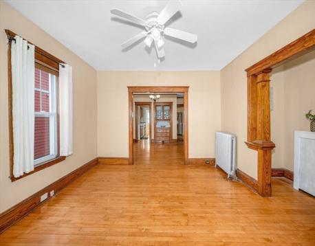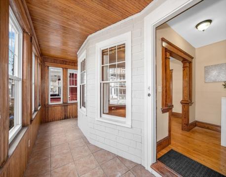 Top location near Tufts, commuter rail, parks and highway. This gorgeous first floor 5 room, 2 bedroom condo is immaculate and ready for new owners! You'll love the high ceilings, the Birdseye maple flooring, formal diningroom with built in hutch and stained glass window. Modern eat in kitchen with granite counter tops, stainless steel appliances and gas cooking. Formal livingroom and a bright sunroom off the rear of kitchen. Over 1000 sq ft of living area. Energy efficient with updated doublepane windows, and blown in cellulose insulation in walls. Enclosed front porch. Outdoor space. Access from unit to full basement (shared) for extra storage and your own laundry. A great combination of turn of the century charm and modern comforts! List of updates attached in MLS. Short walk to Tufts and new Green line, commuter rail and bus. Walk Score of 88 .